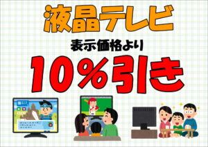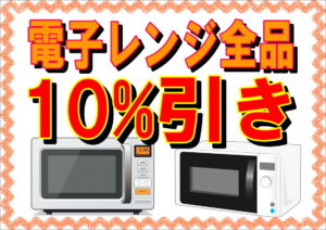 冷蔵庫・洗濯機に続き、液晶TV・電子レンジも全品10%引きの追加イベントセール中!